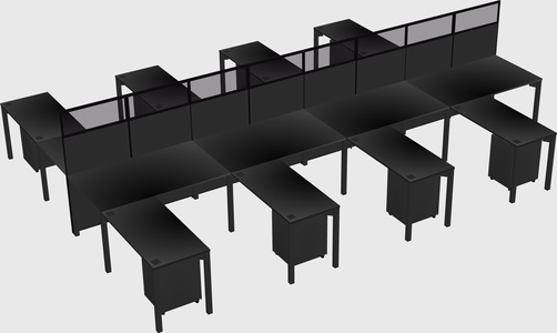 Black Shared L-shape Office Cubicle Panel System For 8 Persons