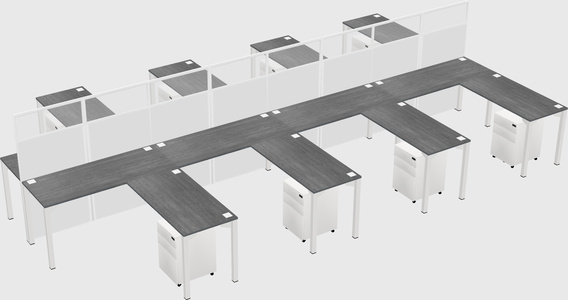 Grey Shared L-shape Office Cubicle Panel System For 8 Persons