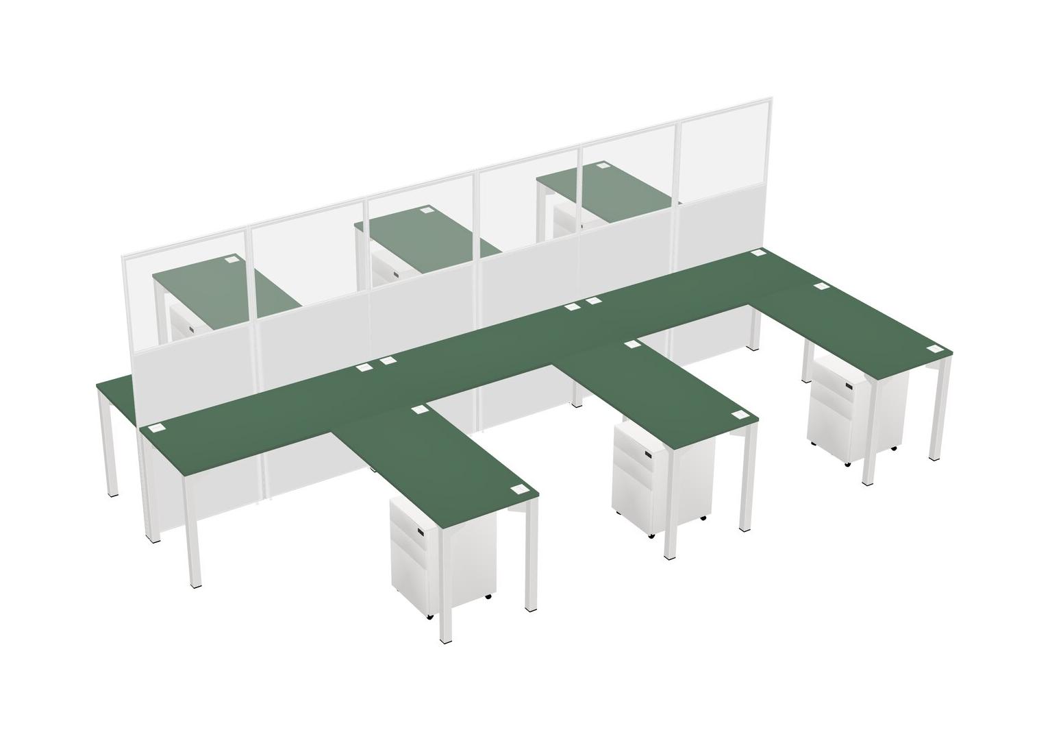 Green Shared L-shape Office Cubicle Panel System For 6 Persons