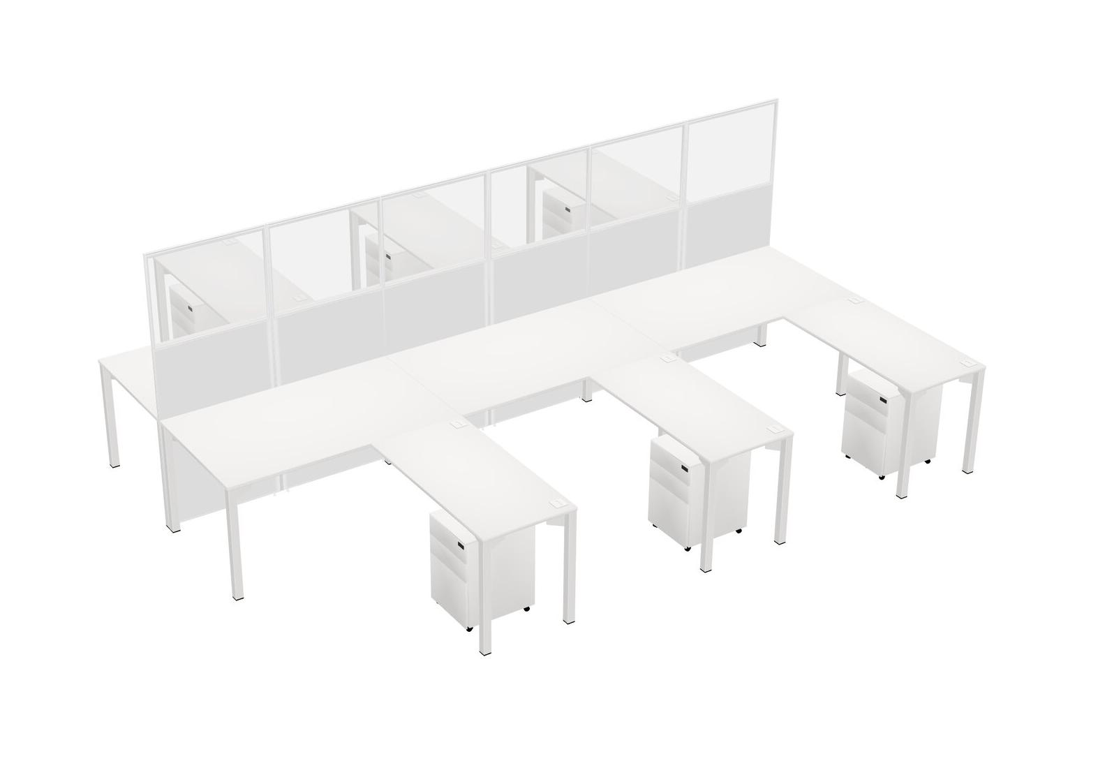 White Shared L-shape Office Cubicle Panel System For 6 Persons