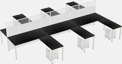White Shared L-shape Office Cubicle Panel System For 6 Persons