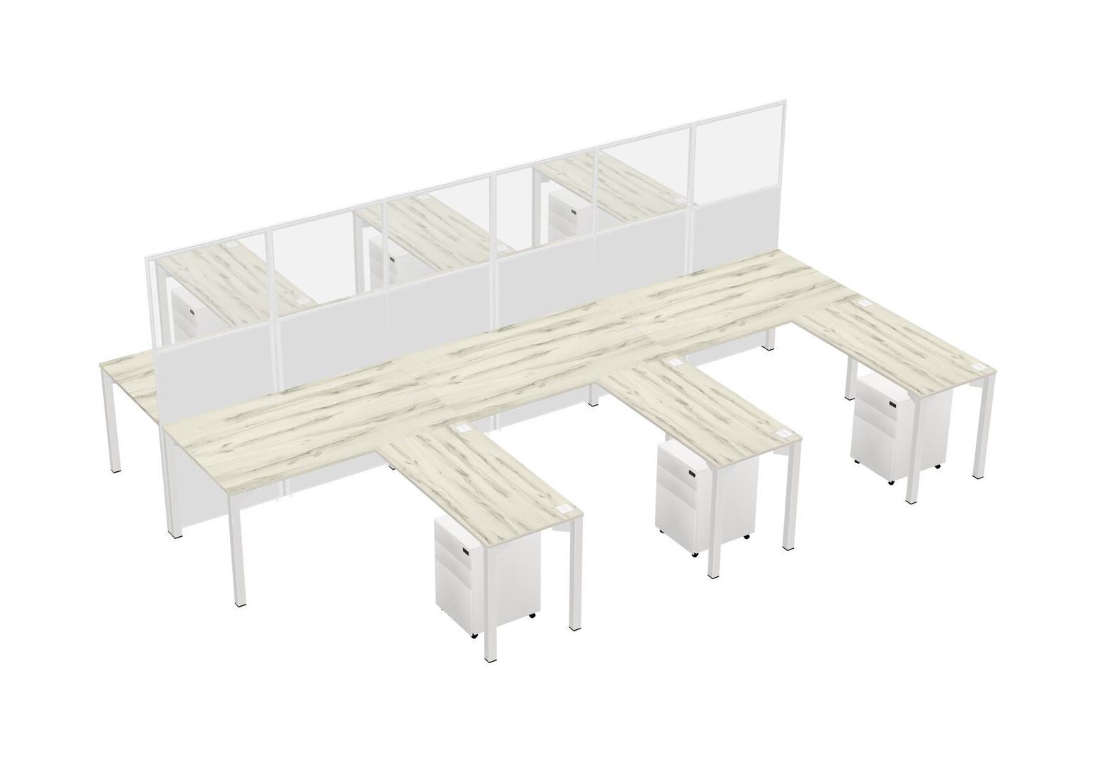 Heinne Holz Shared L-shape Office Cubicle Panel System For 6 Persons