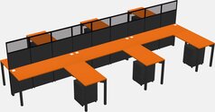 Orange Shared L-shape Office Cubicle Panel System For 6 Persons