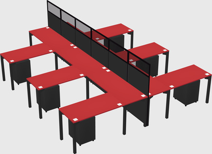 Prism Red Shared L-shape Office Cubicle Panel System For 6 Persons