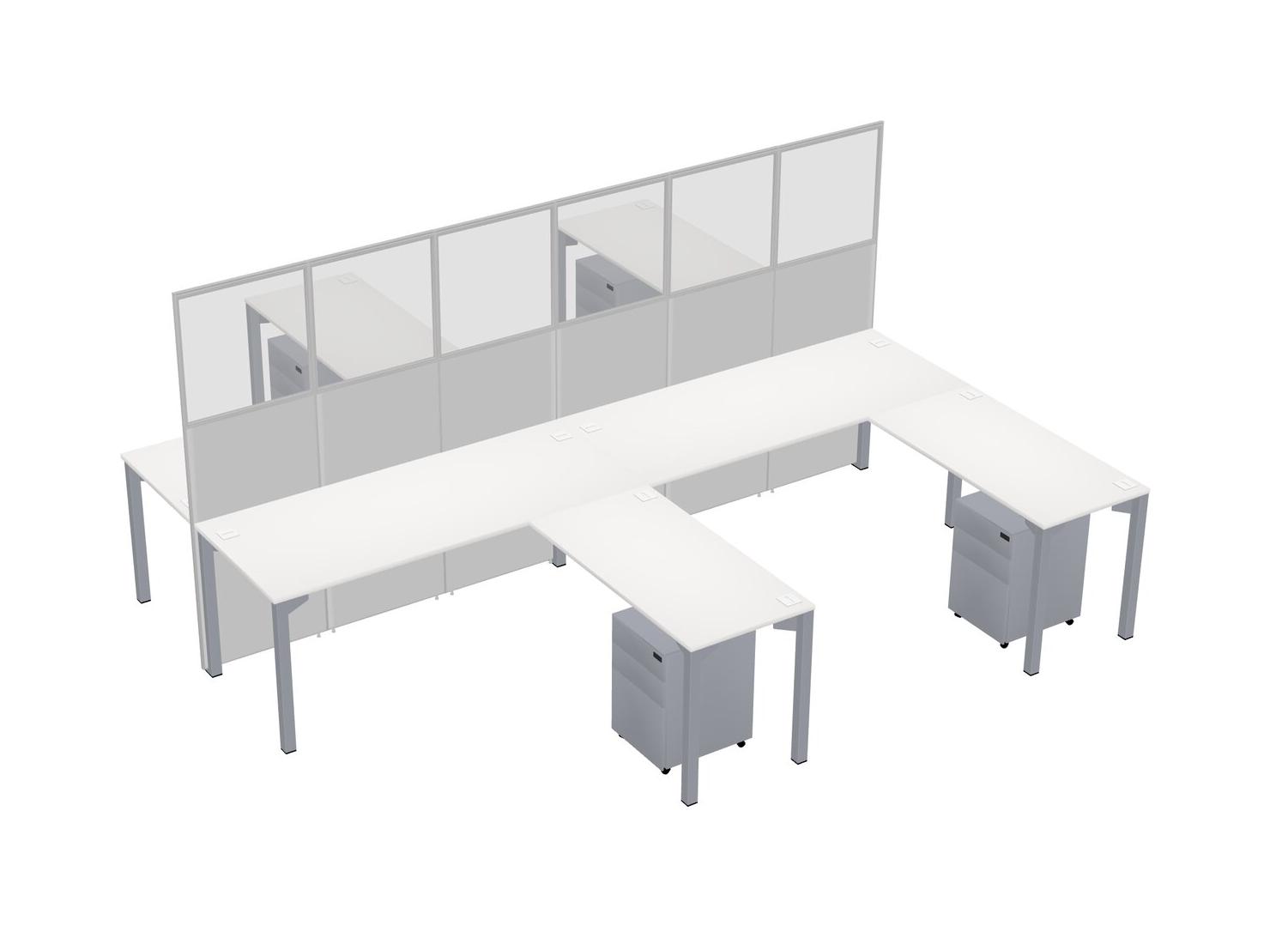 White Shared L-shape Office Cubicle Panel System For 4 Persons