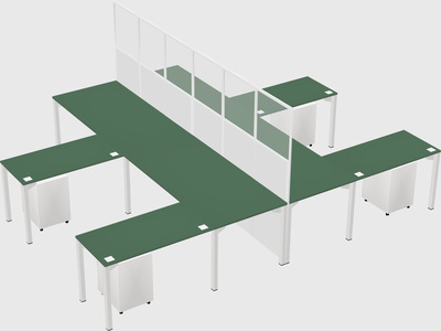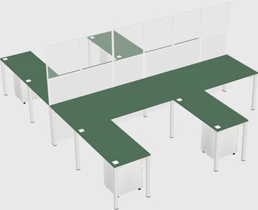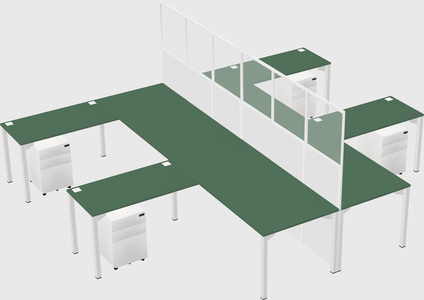Green Shared L-shape Office Cubicle Panel System For 4 Persons