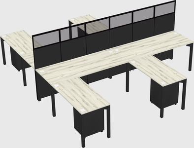 Heinne Holz Shared L-shape Office Cubicle Panel System For 4 Persons