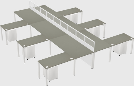Grey Shadows Shared L-shape Office Cubicle Panel System For 6 Persons
