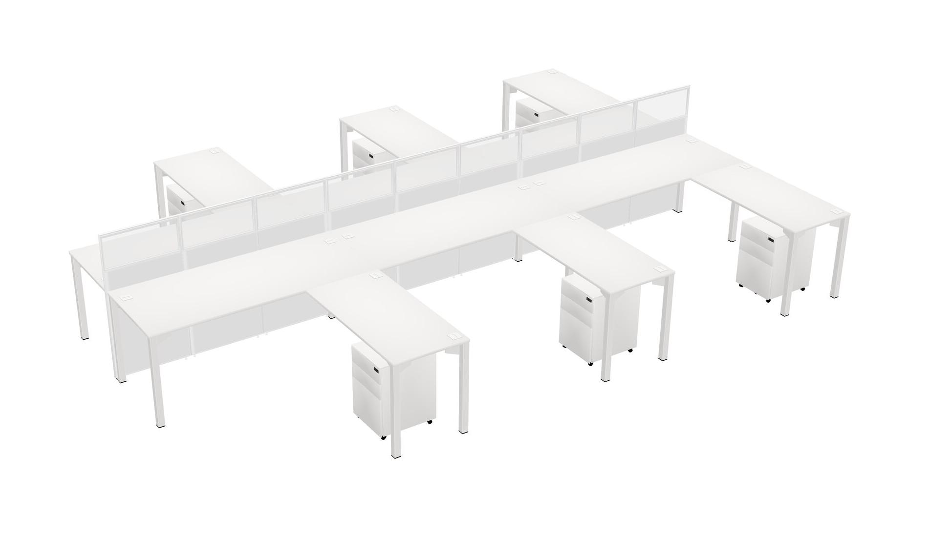 White Shared L-shape Office Cubicle Panel System For 6 Persons