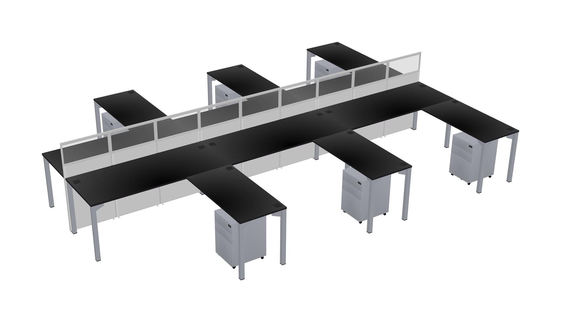 Black Shared L-shape Office Cubicle Panel System For 6 Persons