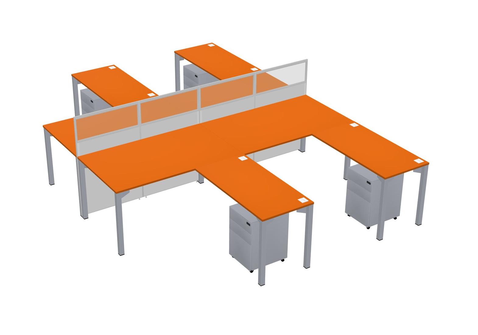 Orange Shared L-shape Office Cubicle Panel System For 4 Persons