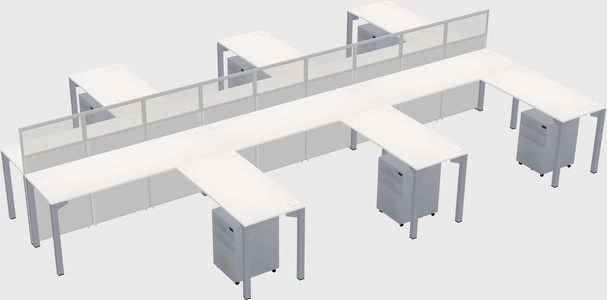 White Shared L-shape Office Cubicle Panel System For 6 Persons