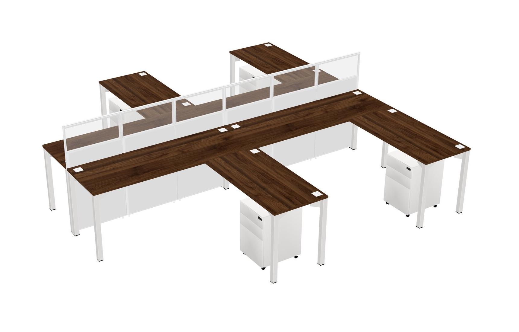 Columbia Walnut Shared L-shape Office Cubicle Panel System For 4 Persons