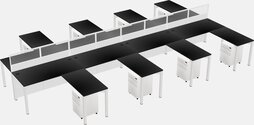 Black Shared L-shape Office Cubicle Panel System For 8 Persons