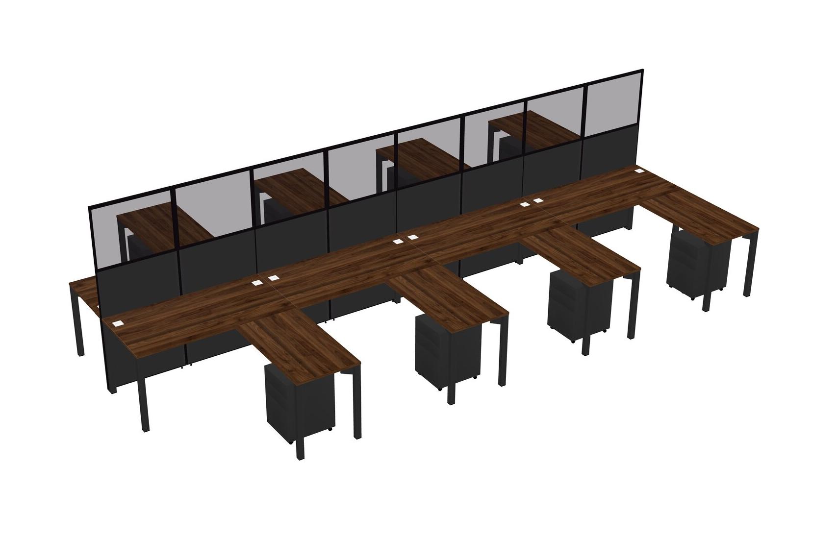 Columbia Walnut Shared L-shape Office Cubicle Panel System For 8 Persons