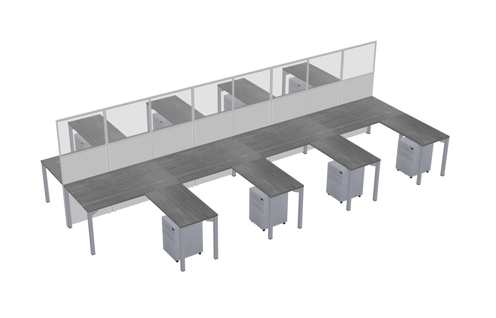 Grey Shared L-shape Office Cubicle Panel System For 8 Persons