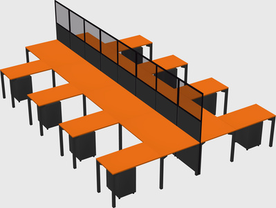 Orange Shared L-shape Office Cubicle Panel System For 8 Persons