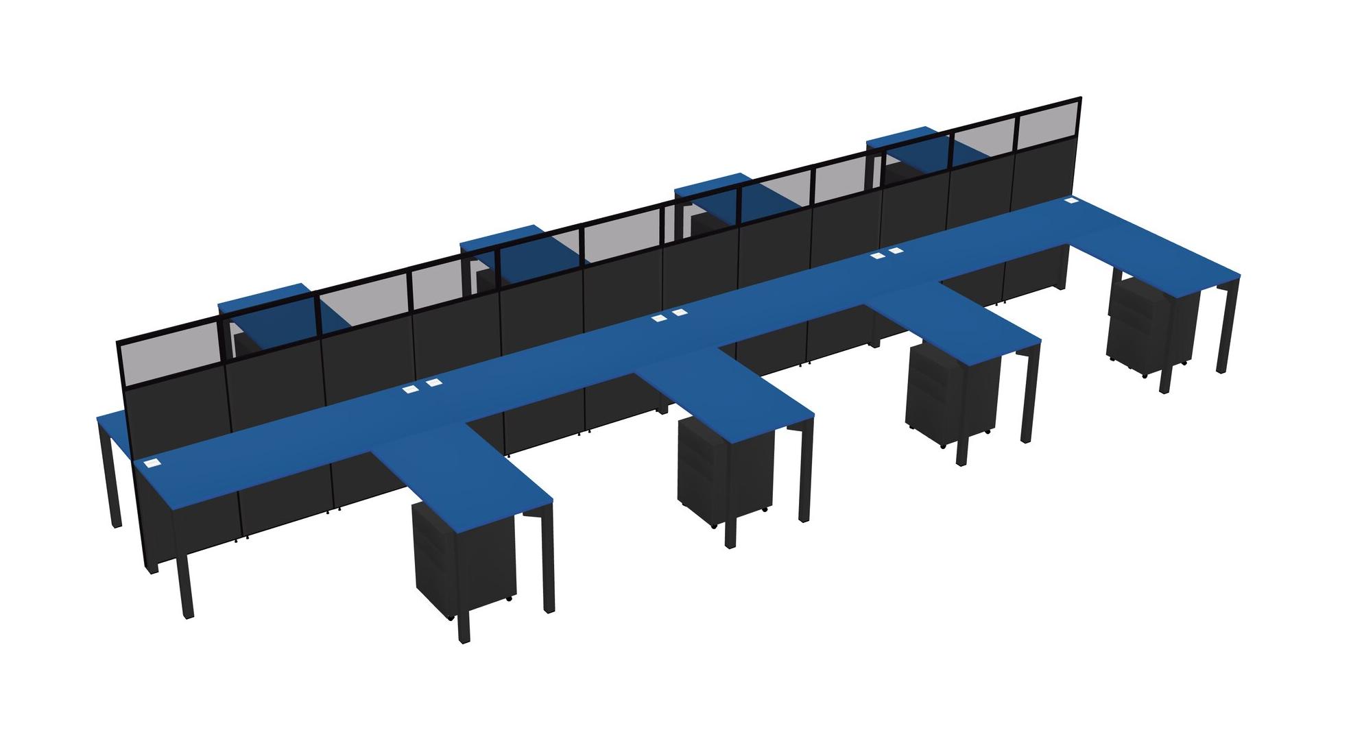 Prism Blue Shared L-shape Office Cubicle Panel System For 8 Persons
