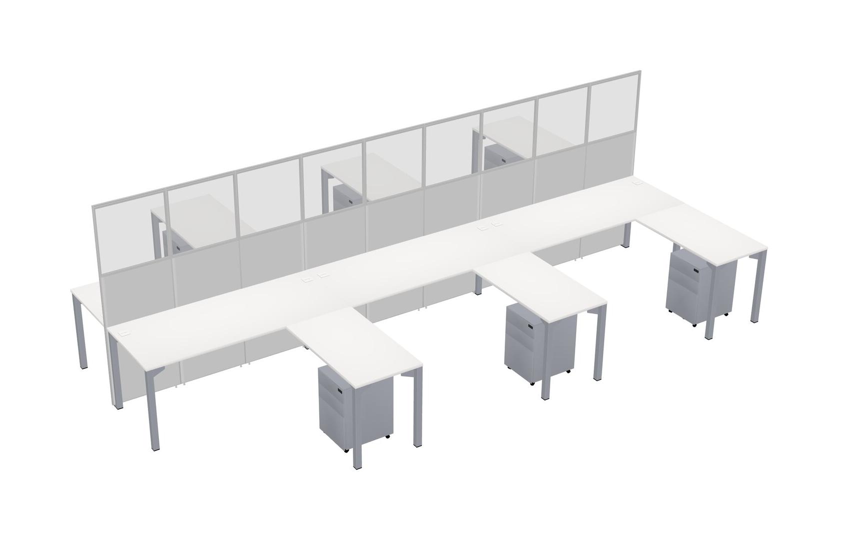 White Shared L-shape Office Cubicle Panel System For 6 Persons