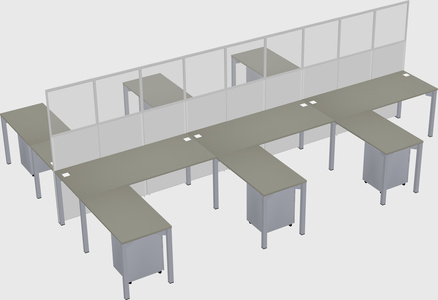 Grey Shadows Shared L-shape Office Cubicle Panel System For 6 Persons