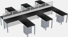 Black Shared L-shape Office Cubicle Panel System For 6 Persons