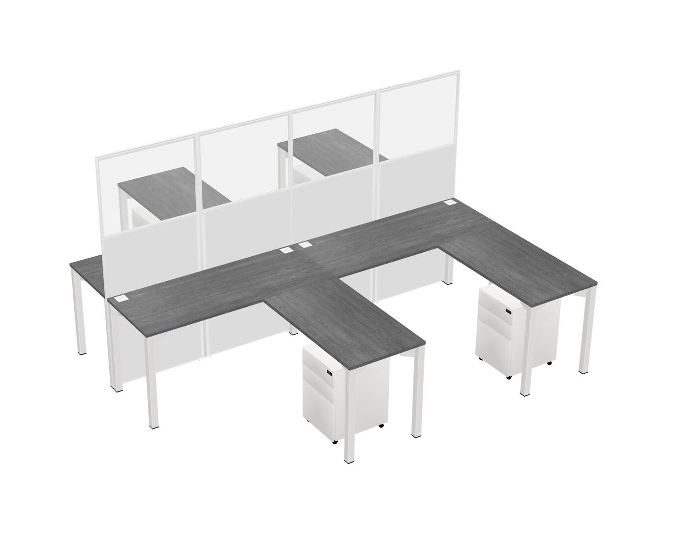 Grey Shared L-shape Office Cubicle Panel System For 4 Persons