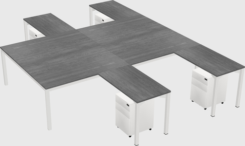 Grey Shared L-shape Office Cubicle Panel System For 4 Persons
