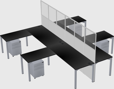 Black Shared L-shape Office Cubicle Panel System For 4 Persons