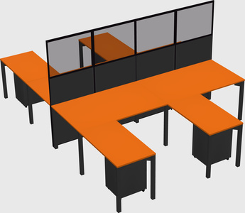 Orange Shared L-shape Office Cubicle Panel System For 4 Persons