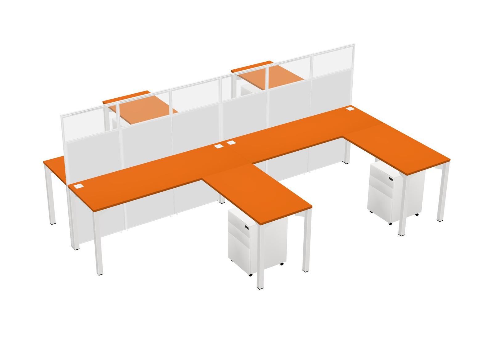 Orange Shared L-shape Office Cubicle Panel System For 4 Persons