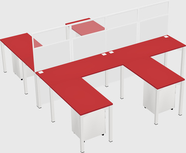 Prism Red Shared L-shape Office Cubicle Panel System For 4 Persons