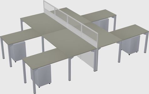 Grey Shadows Shared L-shape Office Cubicle Panel System For 4 Persons