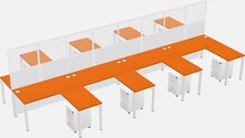 White Shared L-shape Office Cubicle Panel System For 8 Persons