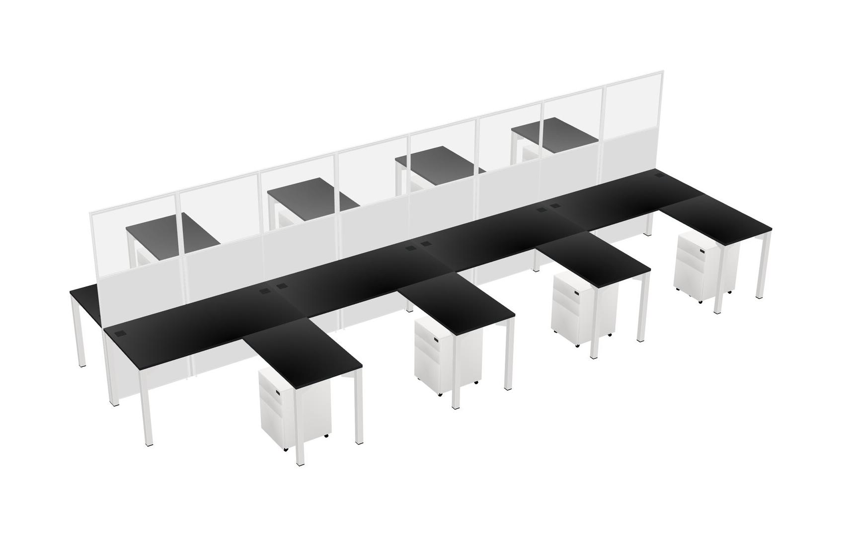 Black Shared L-shape Office Cubicle Panel System For 8 Persons