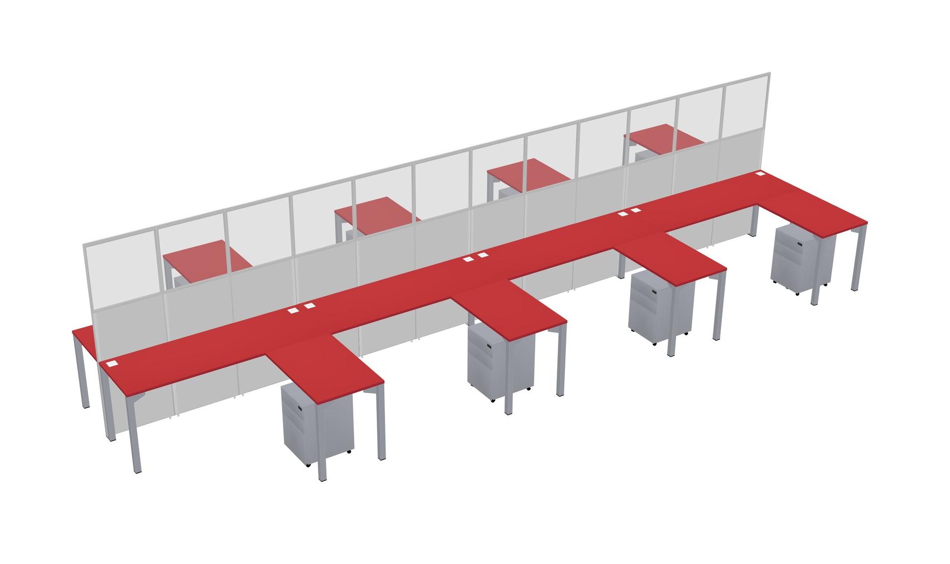 Prism Red Shared L-shape Office Cubicle Panel System For 8 Persons