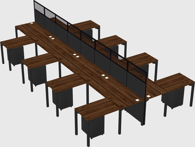 Columbia Walnut Shared L-shape Office Cubicle Panel System For 8 Persons