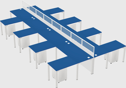 Prism Blue Shared L-shape Office Cubicle Panel System For 8 Persons