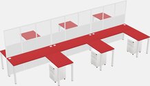 Columbia Walnut Shared L-shape Office Cubicle Panel System For 6 Persons