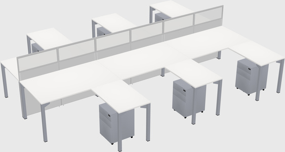 White Shared L-shape Office Cubicle Panel System For 6 Persons