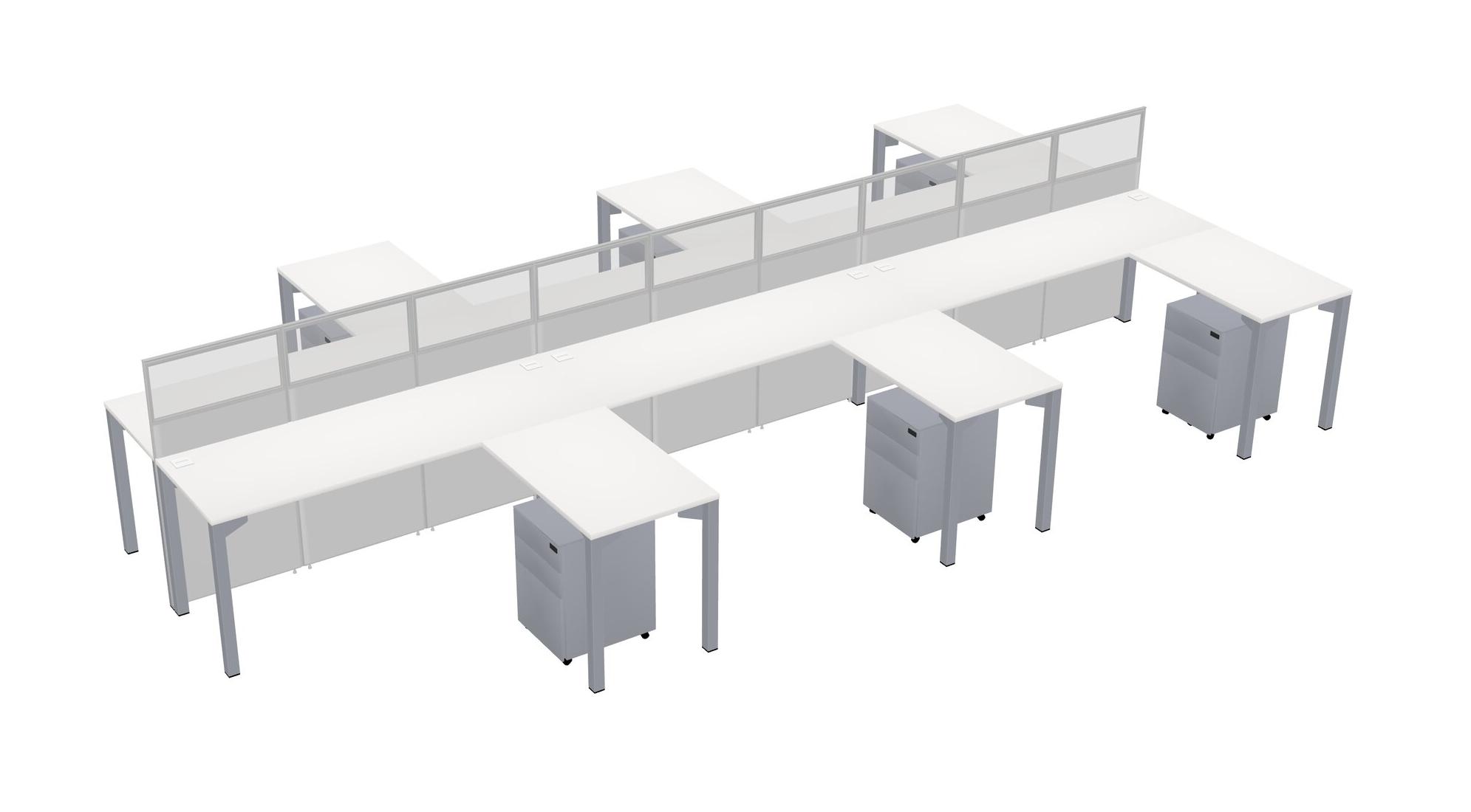White Shared L-shape Office Cubicle Panel System For 6 Persons