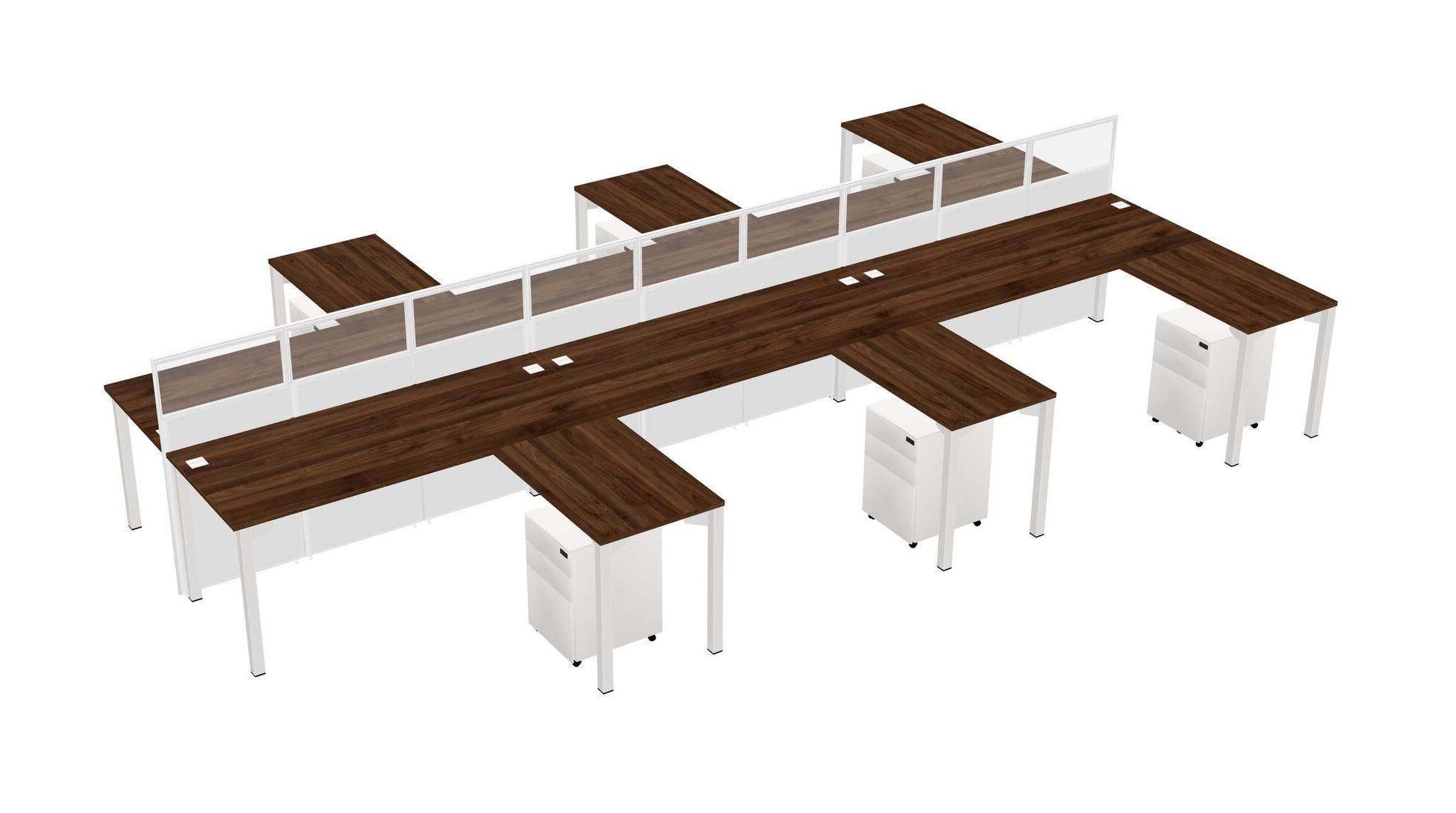 Columbia Walnut Shared L-shape Office Cubicle Panel System For 6 Persons