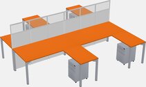 Prism Red Shared L-shape Office Cubicle Panel System For 4 Persons