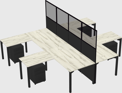 Heinne Holz Shared L-shape Office Cubicle Panel System For 4 Persons