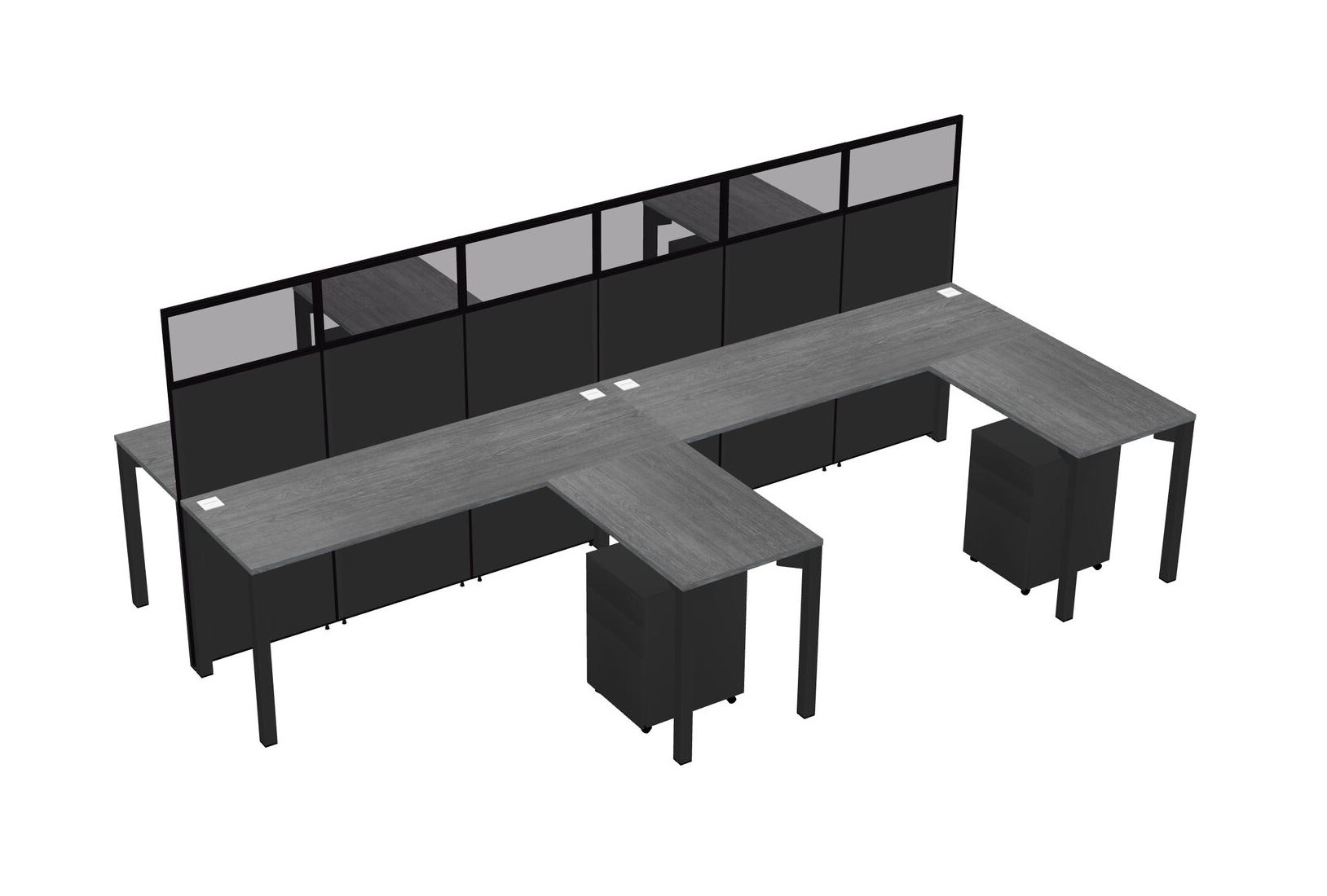 Grey Shared L-shape Office Cubicle Panel System For 4 Persons