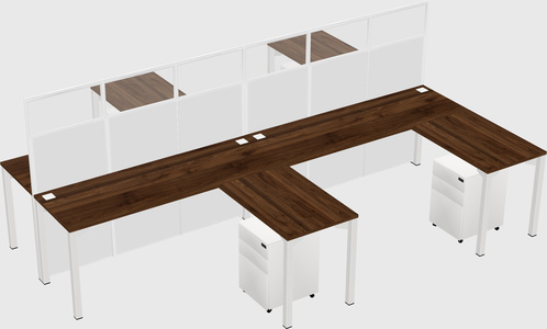 Columbia Walnut Shared L-shape Office Cubicle Panel System For 4 Persons
