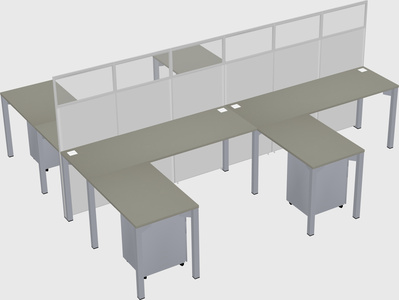 Grey Shadows Shared L-shape Office Cubicle Panel System For 4 Persons