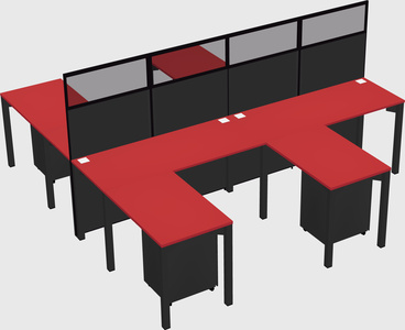Prism Red Shared L-shape Office Cubicle Panel System For 4 Persons