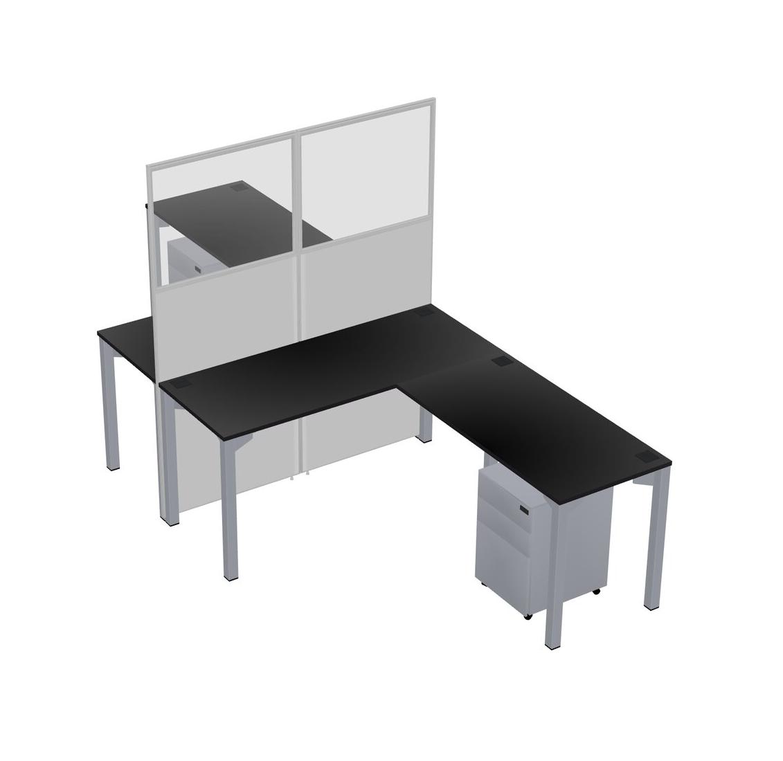 Black Shared L-shape Office Cubicle Panel System For 2 Persons
