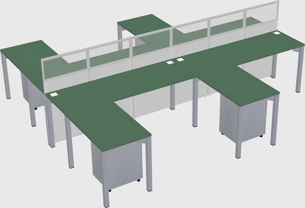 Green Shared L-shape Office Cubicle Panel System For 4 Persons