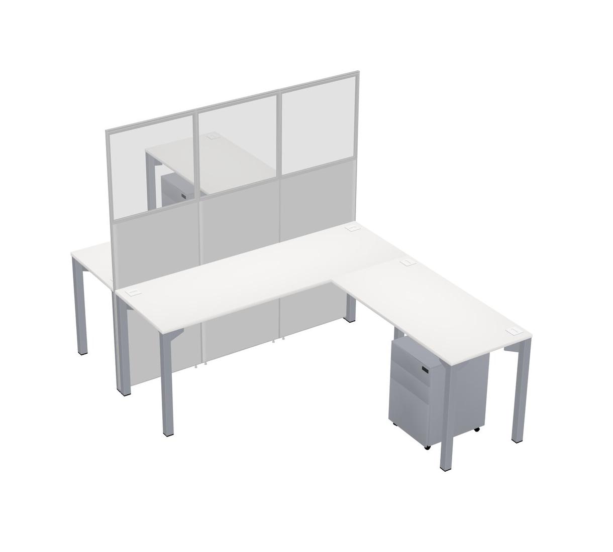 White Shared L-shape Office Cubicle Panel System For 2 Persons